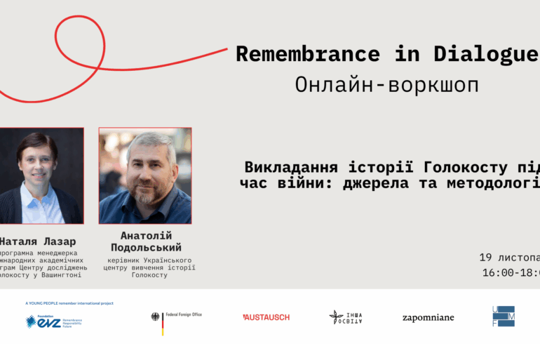 Спільно з Austausch e.V., Fundacja Zapomniane та Urban Memory Foundation запускаємо open call на проєкт «Remembrance in Dialogue». Проєкт досліджуватиме вплив російської агресії на історичну пам’ять і освітню роботу з молоддю щодо нацистських злочинів у Європі. Програма Проєкті «Remembrance in Dialogue» зосереджений на збереженні пам’яті про Голокост в умовах війни в Україні. У межах програми […]